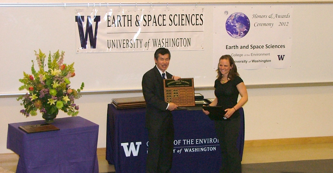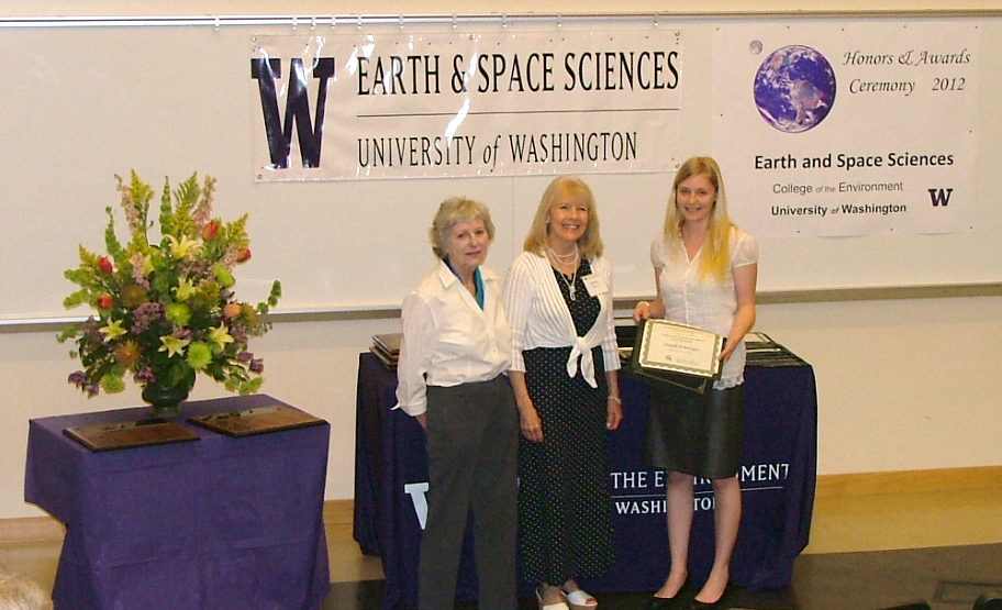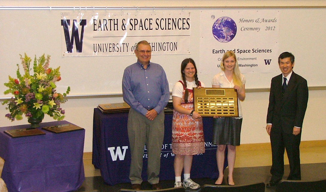 The 2012 Honors and Awards Ceremony was held on Thursday May 17th at 3:30 pm in JHN-102, hosted by ESS Chair Robert Winglee. There were numerous honors, awards, and scholarships given during this ceremony before adjourning to a reception in the Johnson Hall Courtyard.