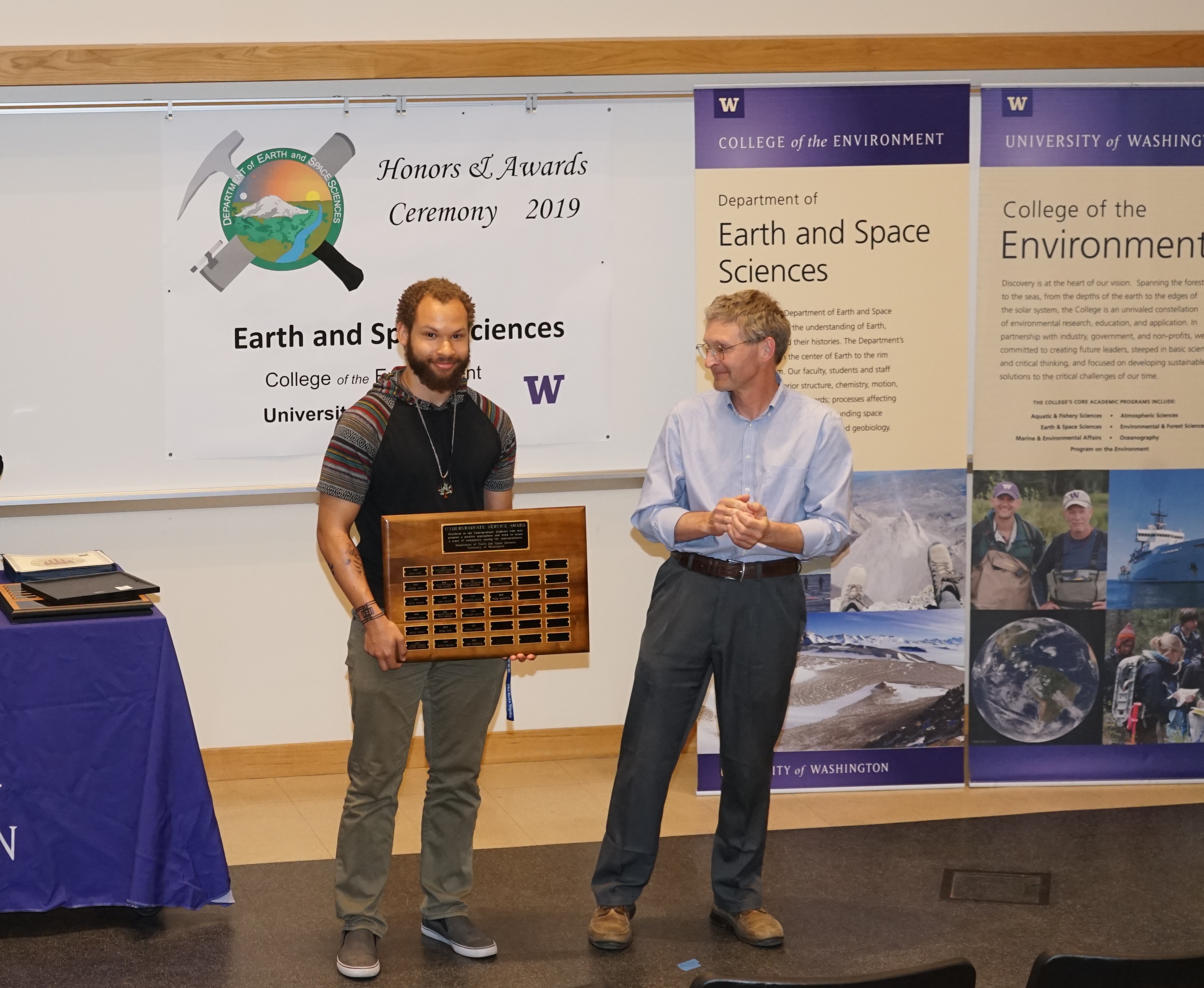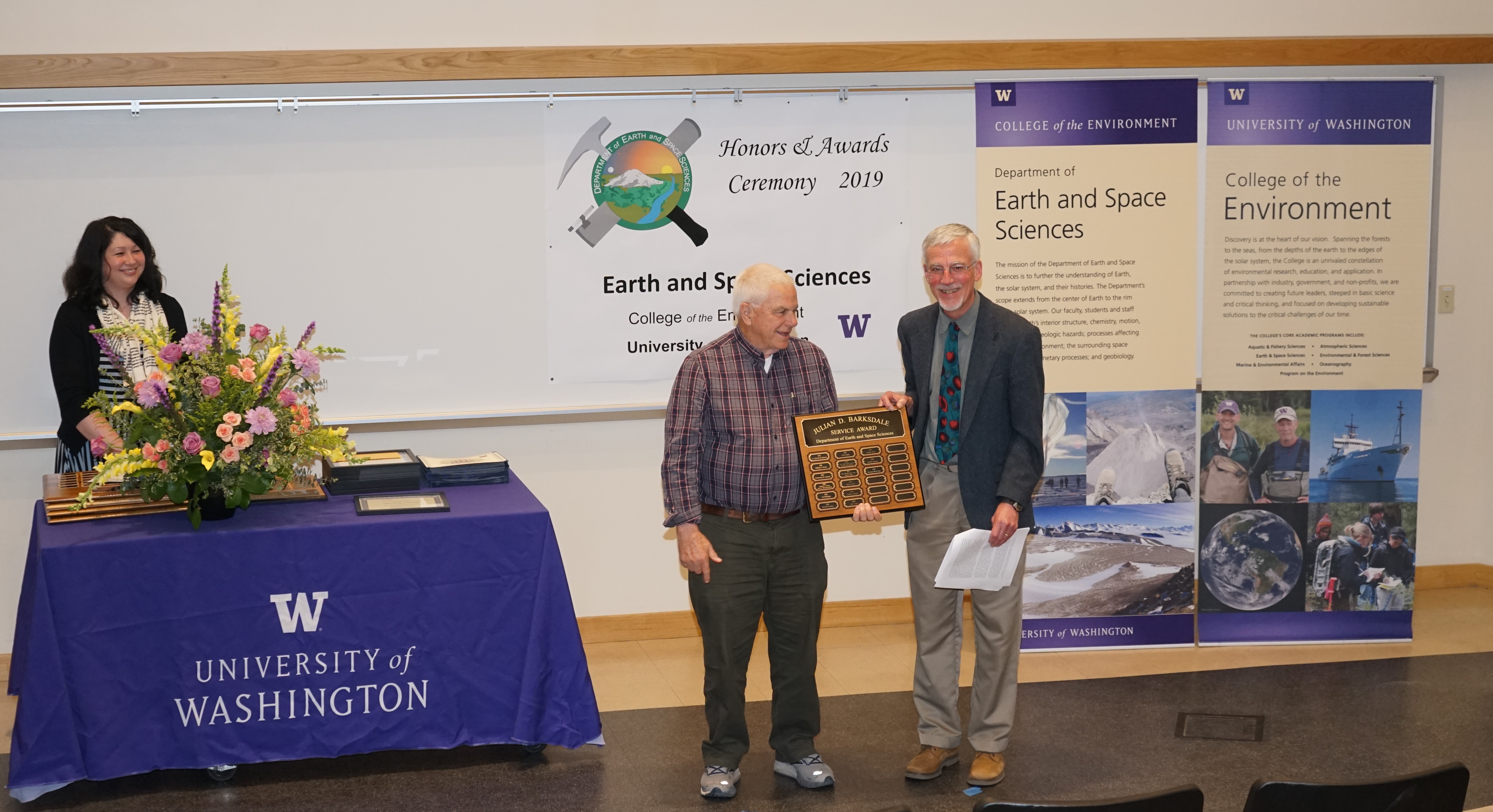 The 2019 UW Dept of Earth and Space Sciences Honors and Awards Ceremony was held on Friday, May 12 at 3:30 PM in JHN-102, hosted by ESS Chair Ken Creager. There were numerous honors, awards, and scholarships given during this ceremony before adjourning to a reception in the Johnson Hall Courtyard.